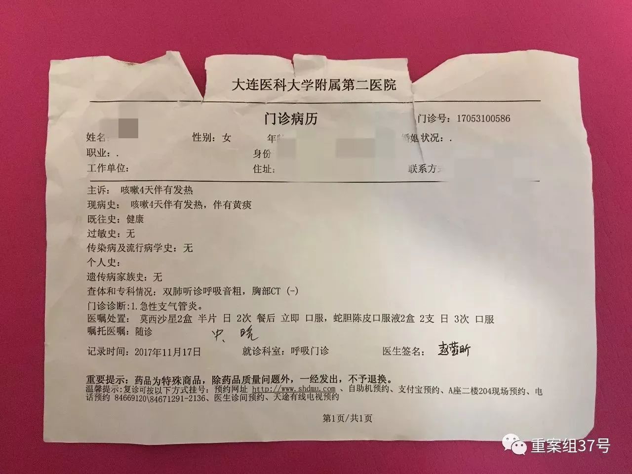 十多天后,張嘉佳在北京安達醫院就診時被診斷為“上呼吸道感染”,也有其他鄰居被診斷出“雙下肺紋理增強”等呼吸道疾病。